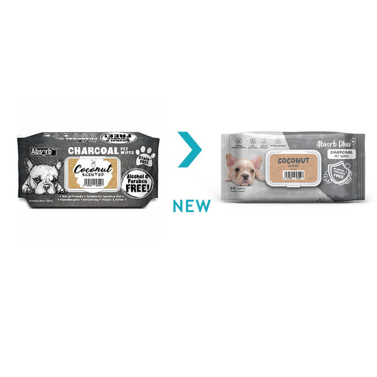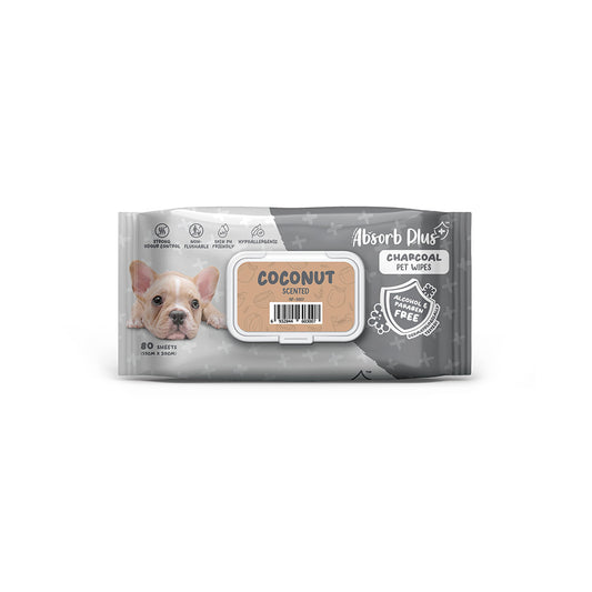 ABSORB PLUS Charcoal Coconut Pet Wipes 80 Sheets 20x15cm