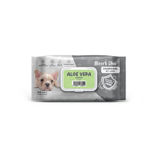 ABSORB PLUS Aloe Vera Charcoal Pet Wipes 80 Sheets 20x15cm