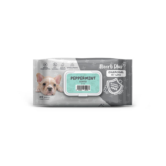 ABSORB PLUS Peppermint Antibacterial Pet Wipes 80 sheets 20x15cm
