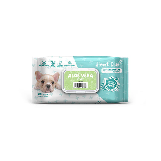 ABSORB PLUS Aloe Vera Antibacterial Pet Wipes 80 Sheets 20x15cm