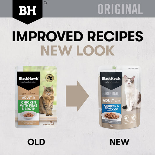 BLACK HAWK Original Chicken & Seafood in Gravy Adult Wet Cat Food 85g x 12