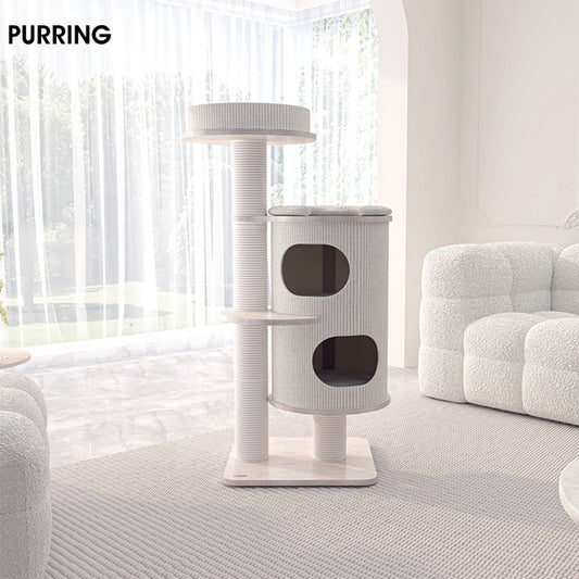 HONEYPOTCAT PURRING Plush & Sisal Barrel Cat Tower - 122cm