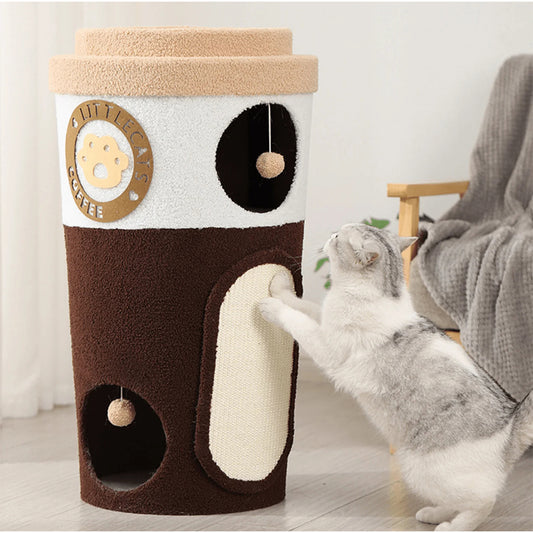MARTINA Milk Tea Cup Cat Dual-Level Condo L