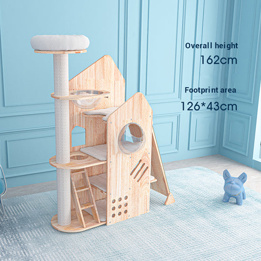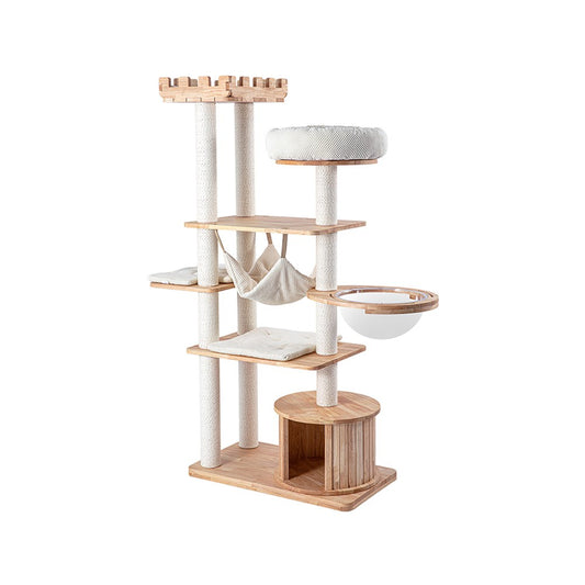 HONEYPOTCAT MZ Varnished Solid Wood Cat Tower With Capsule - 163cm