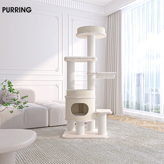 HONEYPOTCAT PURRING Multi-Tier Plush & Sisal Deluxe Cat Tree - 153cm