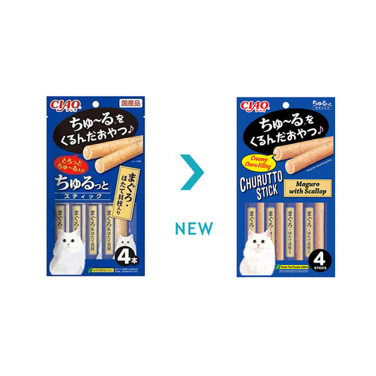 CIAO Churutto Stick Maguro with Scallop Dry Cat Treats 4x7g