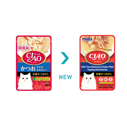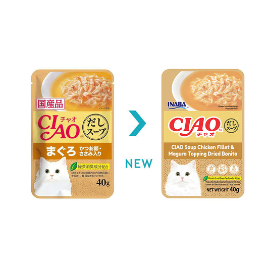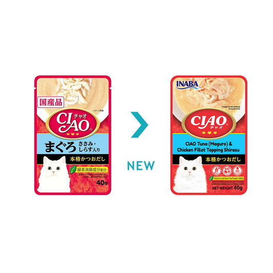 CIAO Chicken Fillet and Maguro Topping In Dried Bonito Soup Wet Cat Treats 40g (pouch)