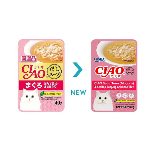 CIAO Chicken Fillet In Tuna (Skipjack) And Scallop Broth Soup Cat Treats 40g (pouch)