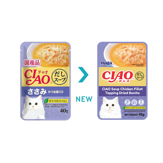 CIAO Chicken Fillet Topping with Dried Bonito Soup Cat Treats 40g (pouch)