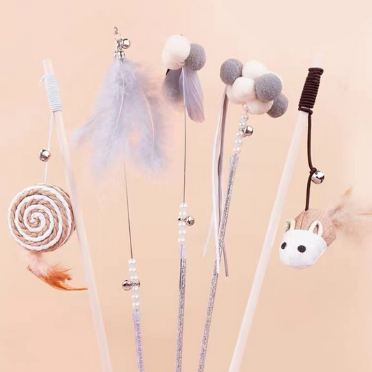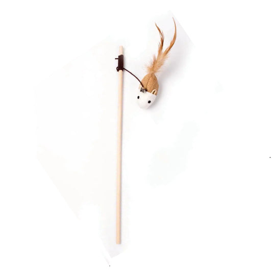 HOOPET Wooden Linen Mouse Stick Cat Teaser & Wand