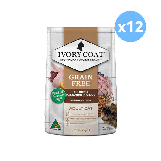 IVORY COAT Grain Free Chicken & Kangaroo Gravy Adult Wet Cat Food 85g x 12