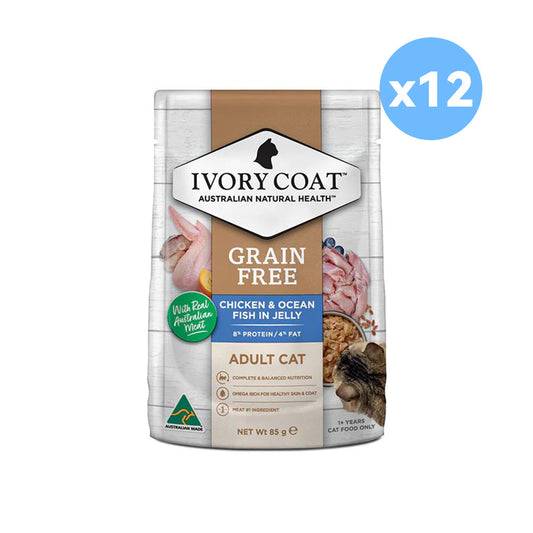 IVORY COAT Grain Free Chicken & Ocean Fish Jelly Adult Wet Cat Food 85g x 12