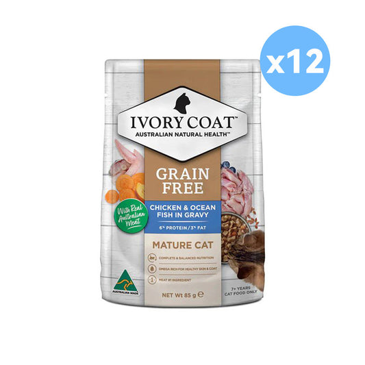IVORY COAT Grain Free Chicken & Ocean Fish Gravy Mature Wet Cat Food 85g x 12
