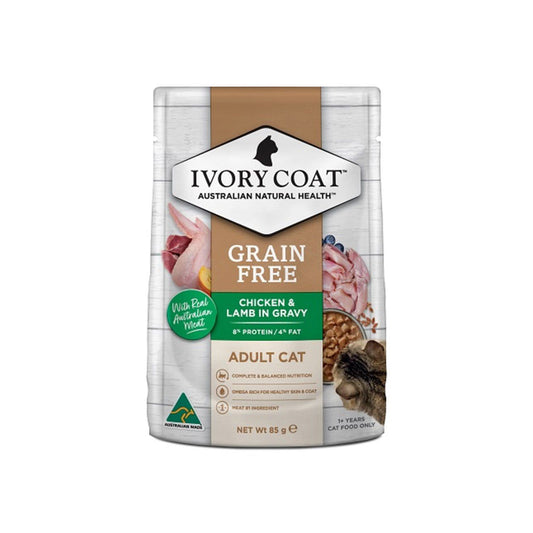 IVORY COAT Grain Free Chicken & Lamb Gravy Adult Wet Cat Food 85g x 12