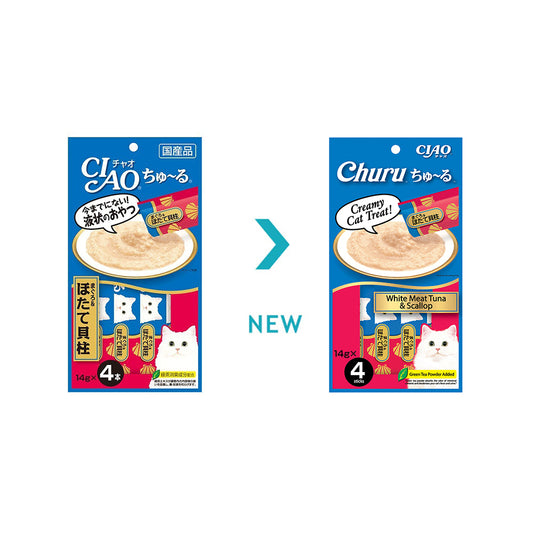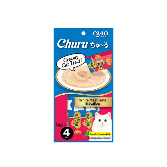 CIAO Churu White Meat Tuna and Scallop Puree Wet Cat Treats 4x14g