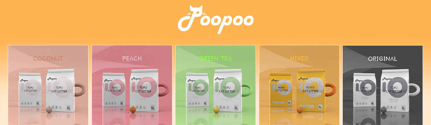 Poopoo cat litter is made from tofu-based materials, designed for better clean-up and disposal. It focuses on environmental sustainability, cleanliness, and reducing waste.