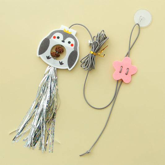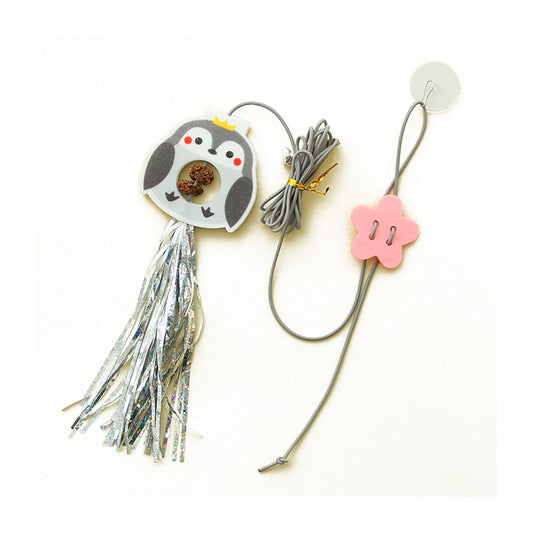 Grey Penguin Hanging Door with Elastic Swing & Catnip Ball Cat Toy
