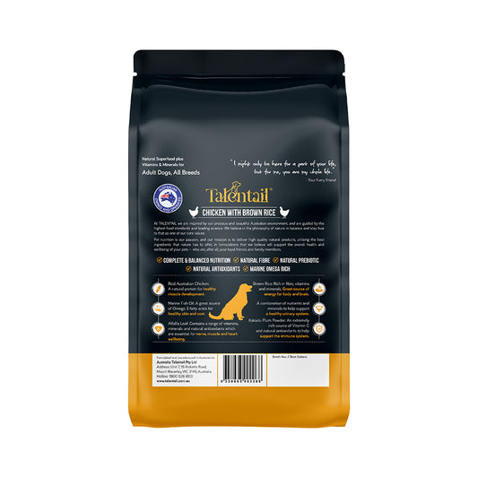 TALENTAIL Chicken with Brown Rice Kibble Dog Food for Adult Dogs 15kg