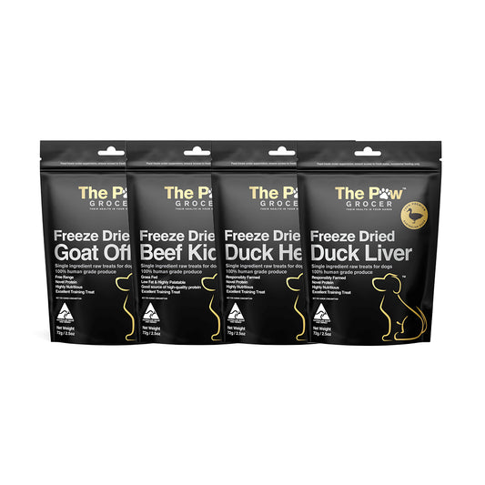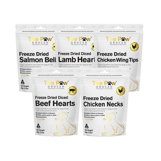Not any fillers. Not any fake nasties. Just full-bodied taste from real meat and protein sources. The Paw Grocer treats are freeze-dried to keep the taste and nutrients in. This keeps the natural goodness while minimising processing. There are many choices that are good for all stages of life, so you can treat your pet without worrying. And some treats are made right here in Australia, so they are fresher and better.