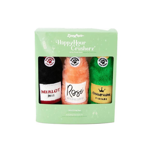 ZIPPY PAWS Happy Hour Wine Crusherz 3-Pack Squeaker Dog Toy