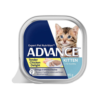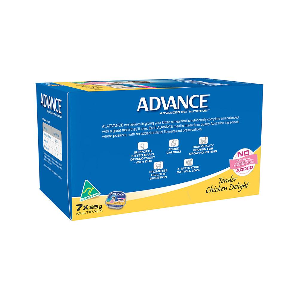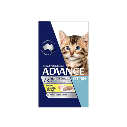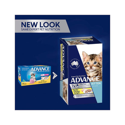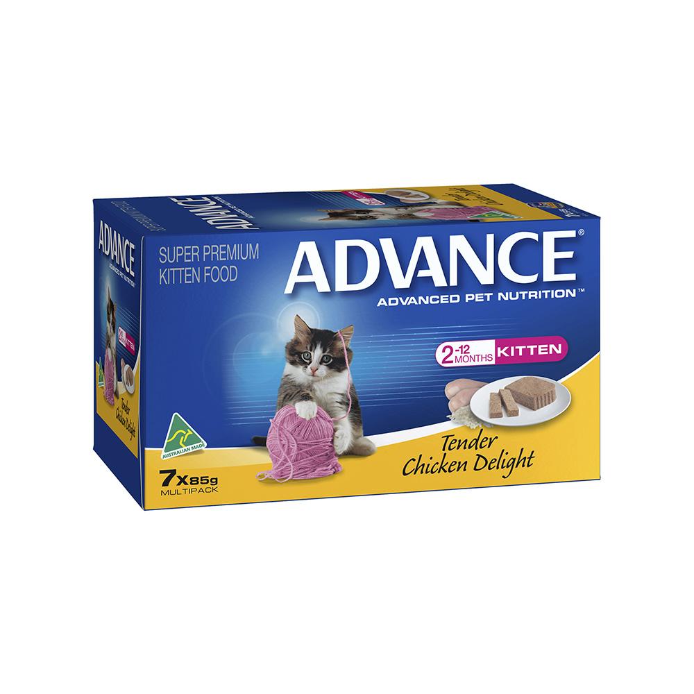 ADVANCE Tender Chicken Cat Food for Kittens 7x85g is a yummy, healthy food recommended for your fur baby. A complete and balanced formula is essential for growth and development that's why ADVANCE kitten cat food is designed with premium ingredients, packed with protein and choline for your growing kittens.