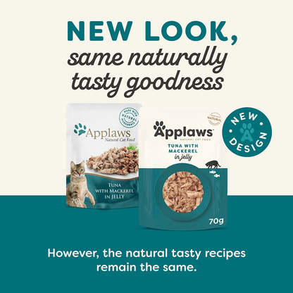 Applaws Tuna with Mackerel Jelly Wet Cat Food for Adult Cat 70g is a nutritious jelly food made with only three ingredients, ensuring that your cat gets the best possible nutrition. Plus, it's free of additives and grains, making it easy for your furry friend to digest.