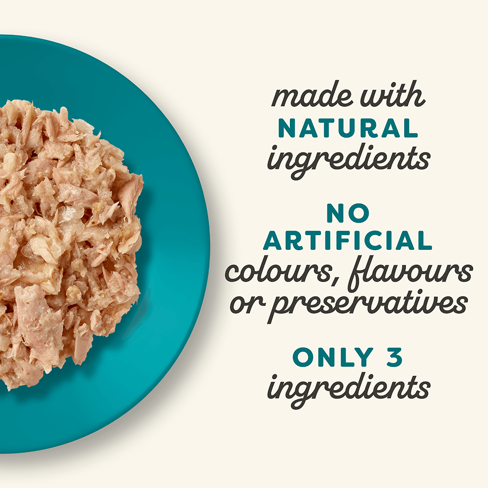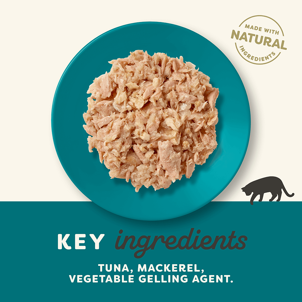 - Natural cat food packed with succulent tuna whole meat and mackerel in tasty jelly.