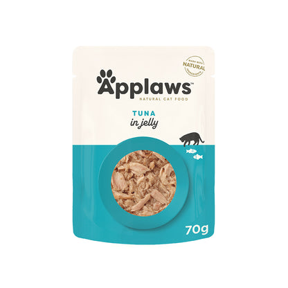 APPLAWS Tuna Wet Cat Food Jelly Pouch 70g is a delicious and super fun cat-food upgrade. Tuna in jello, your cat will never know what hit them! These mouthwatering morsels are also jam-packed with Omega 3 from Tuna for heart and eye health and Iron that boosts red blood cell production. So say no to the dry stuff and give your kitty something they'll always come back to!