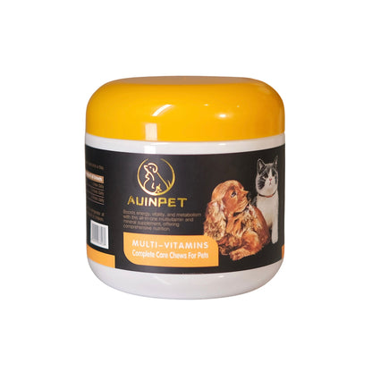 Support your pet’s daily health with AUINPET Multi-Vitamins Complete Care Chews! Specially formulated for both cats and dogs, these nutrient-packed chews provide essential vitamins and minerals to promote overall well-being, support metabolism, and maintain healthy growth and development. Perfect for pets of all ages, they help fill nutritional gaps caused by diet variations, ensuring your furry friend gets the daily support they need to stay active, healthy, and happy.