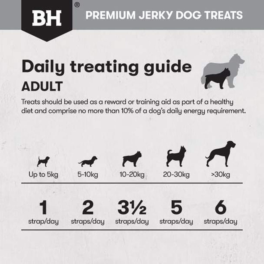 This treat should be used as a reward or training aid as part of a healthy diet and comprise no more than 10% of a dog's daily energy requirement. The feeding guide is for a healthy active dog and treats should be fed under supervision. Always ensure clean, fresh water is available for your dog.