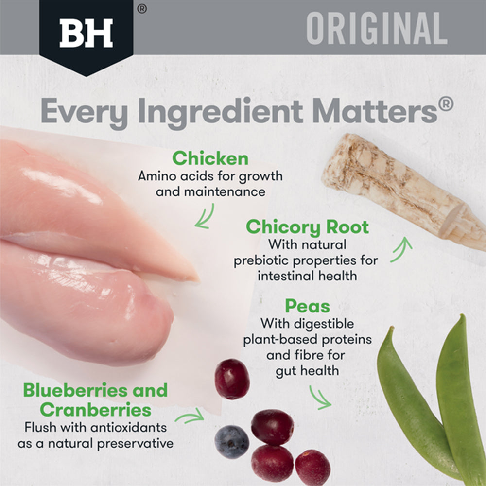 Chicken Meal, Rice, Oats, Field Peas, Chicken Fat (preserved with Mixed Tocopherols [source of Vitamin E], Citric Acid, Rosemary Extract), Beet Pulp, Chicken Digest, Essential Vitamins & Minerals (see tables), Fish Meal, Canola Oil, Chicory Root, Kelp, Salt, Glucosamine, Natural Antioxidants, Emu Oil, L-Carnitine, Chondroitin, Yucca Schidigera Extract, Tomato Powder, Carrots, Dried Blueberries, Dandelion, Peppermint, Rosemary, Cranberries.