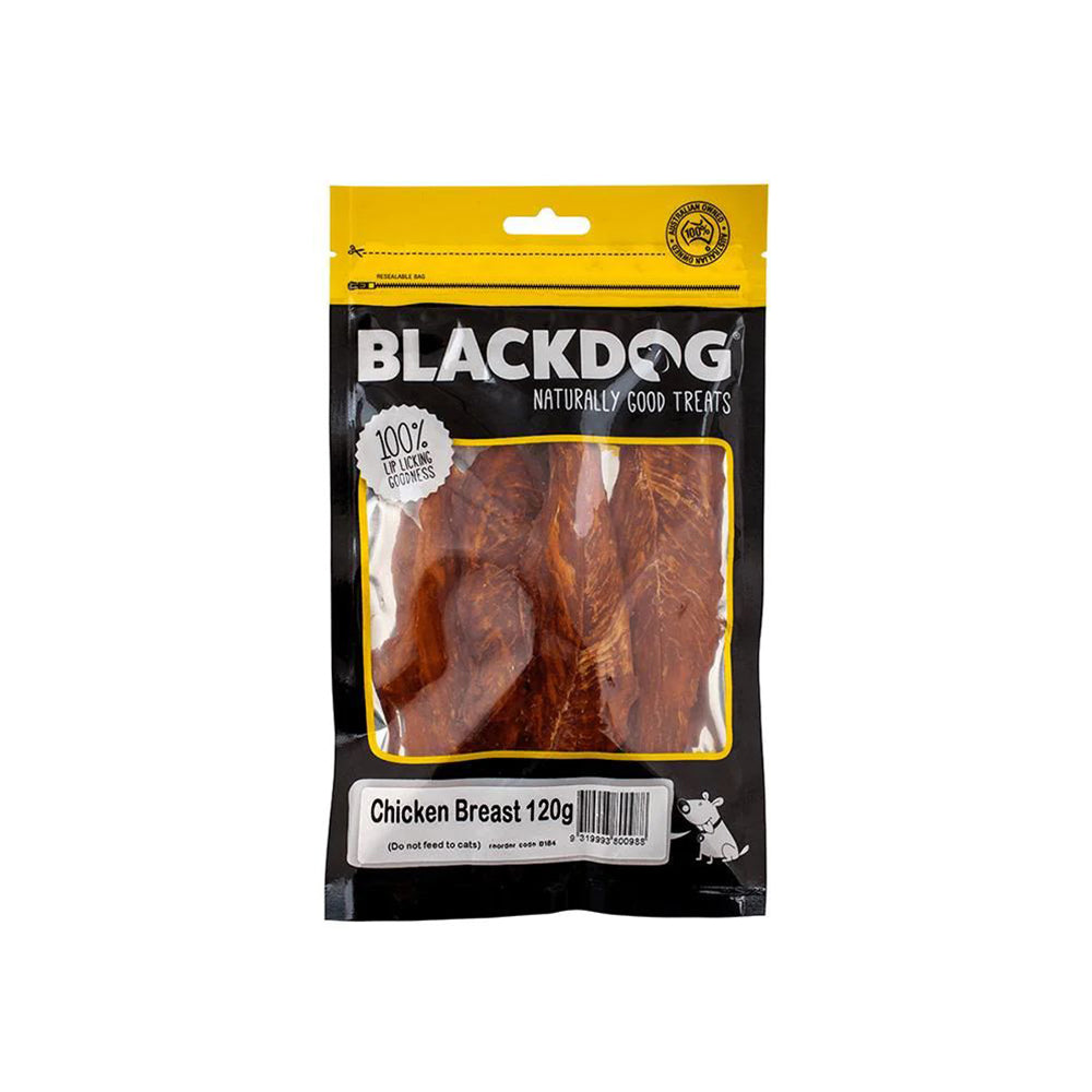 BLACKDOG Chicken Breast Fillet Dry Dog Treats 120g is a protein-rich diet treat that helps build lean muscle and is slowly DRIED for maximum flavour, nutrition and freshness. Each treat is slow-dried which locks in the natural nutrients including Vitamins A for Eye Health & Vitamin E for softer skin and fur.