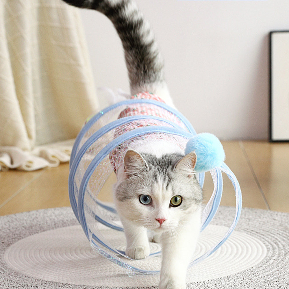 Designed to delight small cats, this playtube hideaway offers an engaging space for exploration and activity. The transparent mesh design and toy-equipped ends create an environment that stimulates your cat's senses and encourages movement.