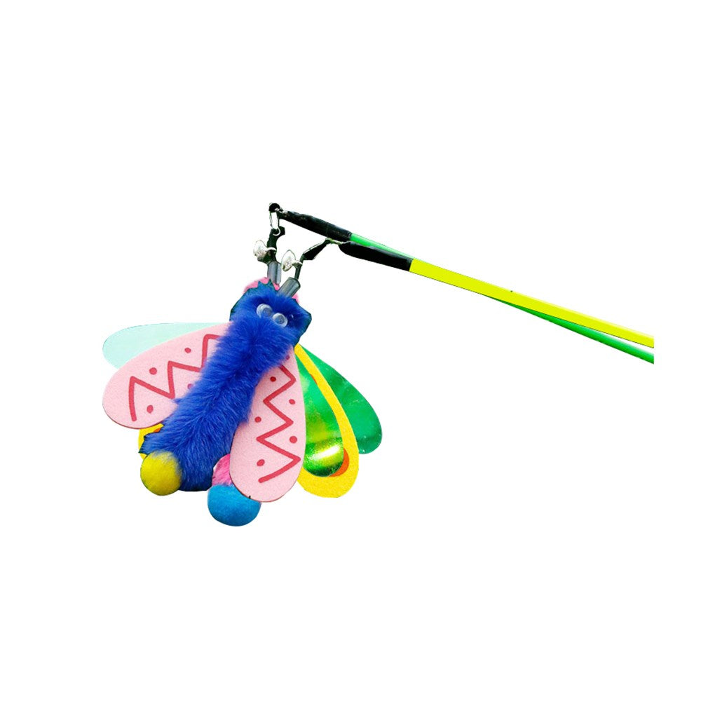 The Blue Flying Insect Bell Cat Teaser presents an opportunity for interactive play and exercise with your kitten. A pet cat teasing toy that encourages comfortable engagement between you and your cat and promises hours of entertainment as your feline companion interacts with the pouncing-worthy interactive toy. In the process, this toy aids in refining hunting skills, as well as providing an outlet for the release of aggression. Additionally, it plays a role in fostering confidence in your cats and developing muscle tone.