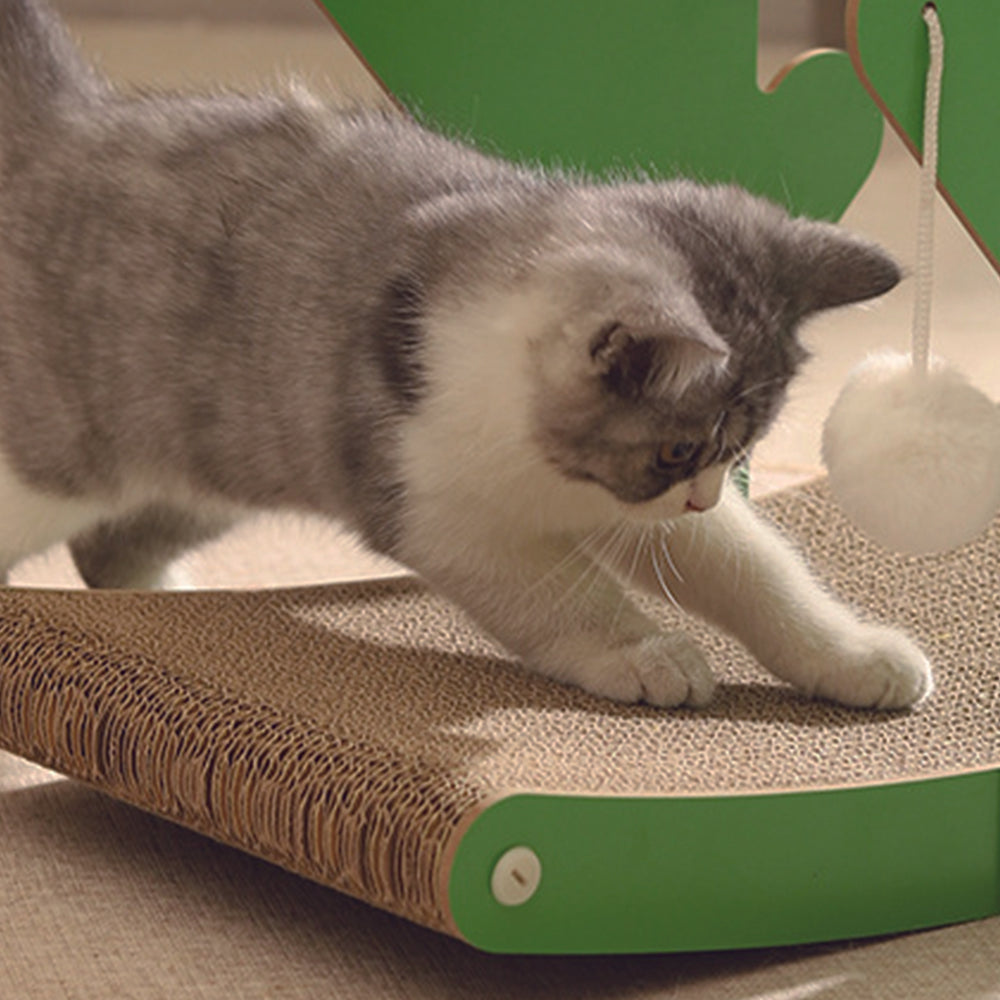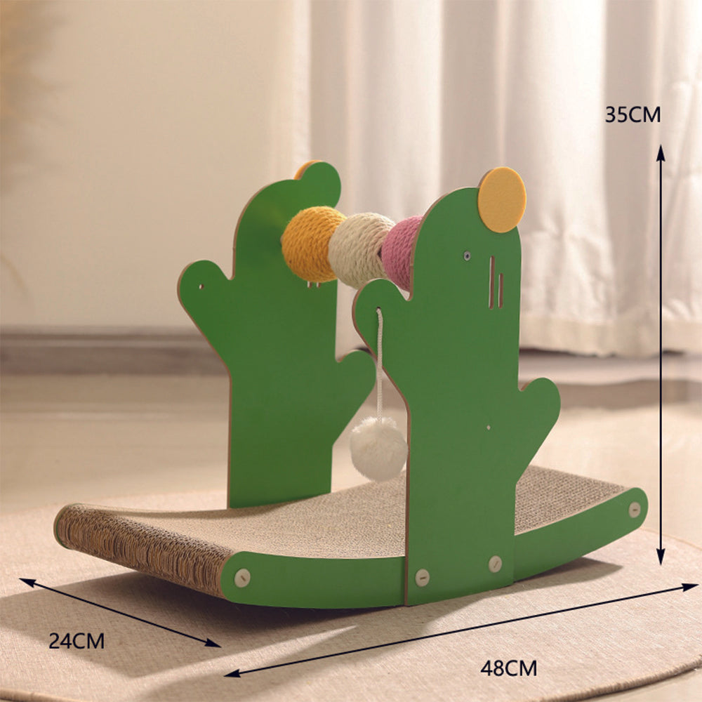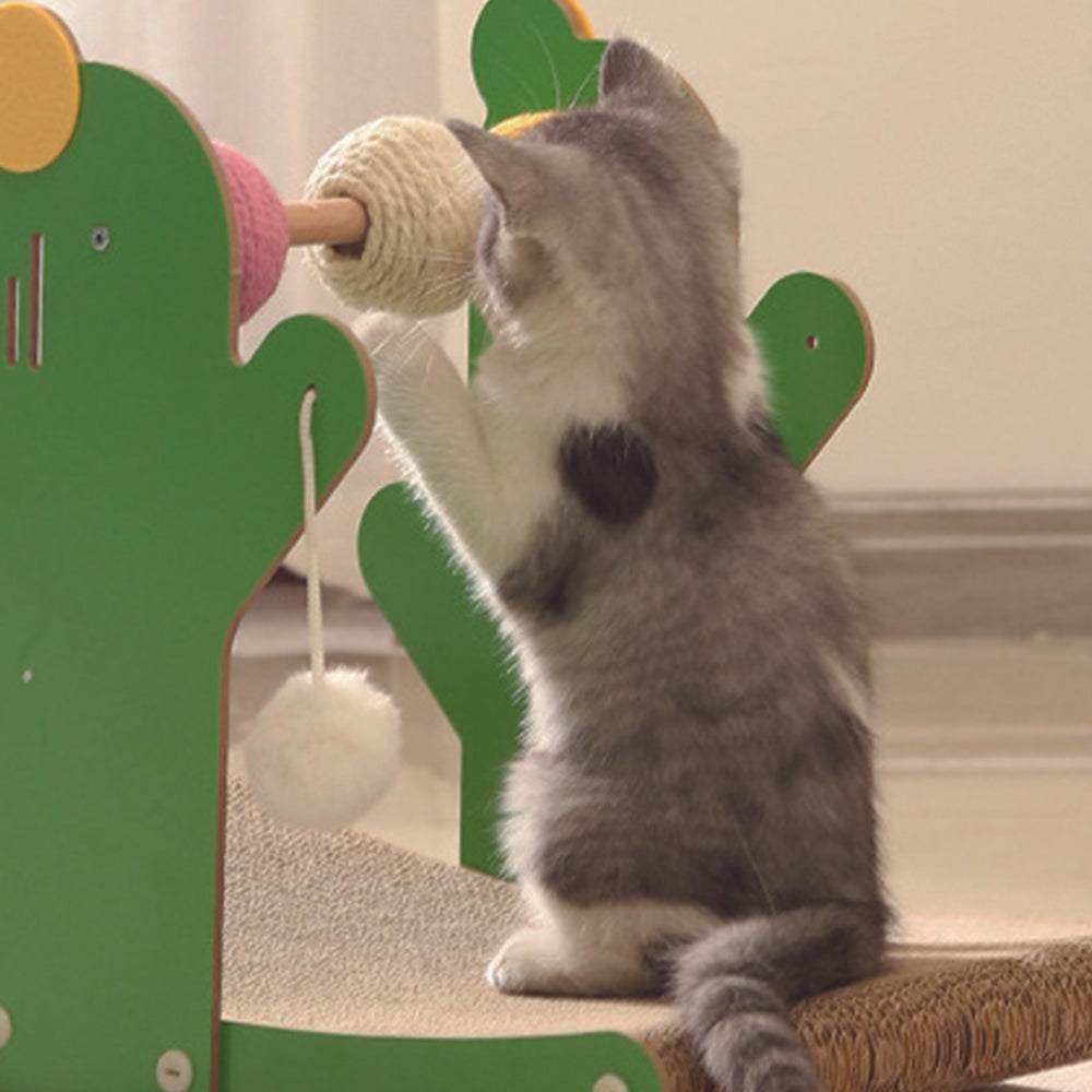 Cactus Corrugated Paper Seesaw Cat Scratcher boasts thick, durable corrugated paper and a replaceable inner core for extended play. It features three small scratch balls and a large plush ball, appealing to both kittens and cats. Ideal for multi-cat households, it serves as a practical and versatile play and rest area. The toy ensures continuous entertainment, keeping your cat engaged and active. With its durability and variety, this interactive toy is designed to prevent any dull moments for your feline friend, providing both fun and comfort.