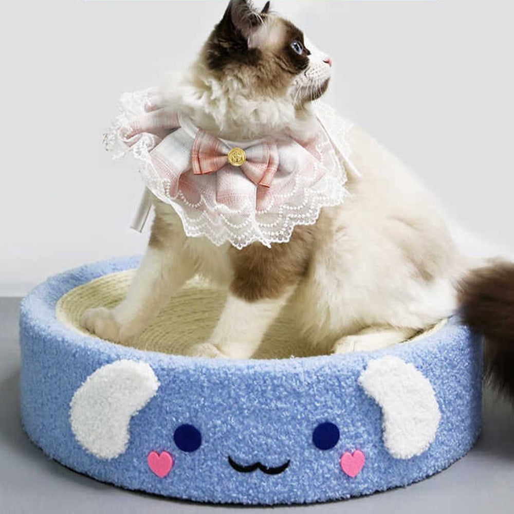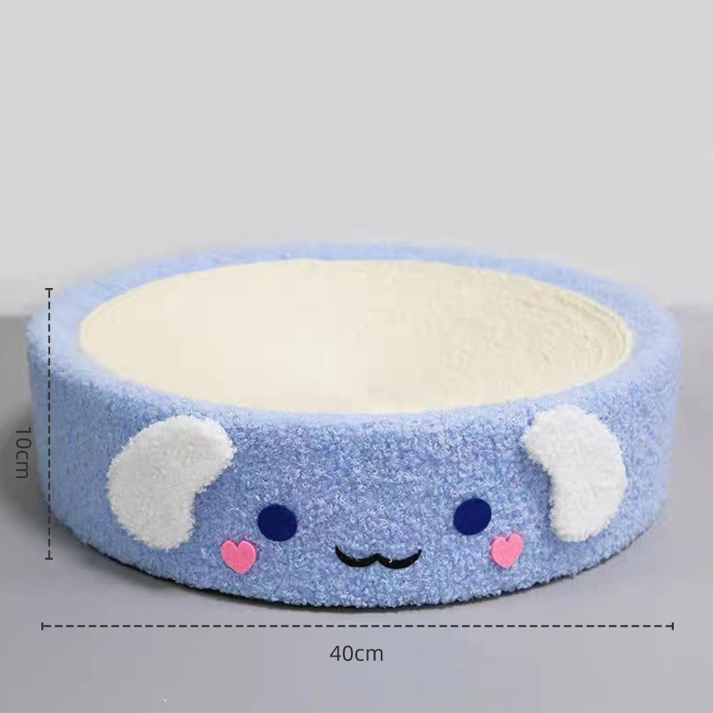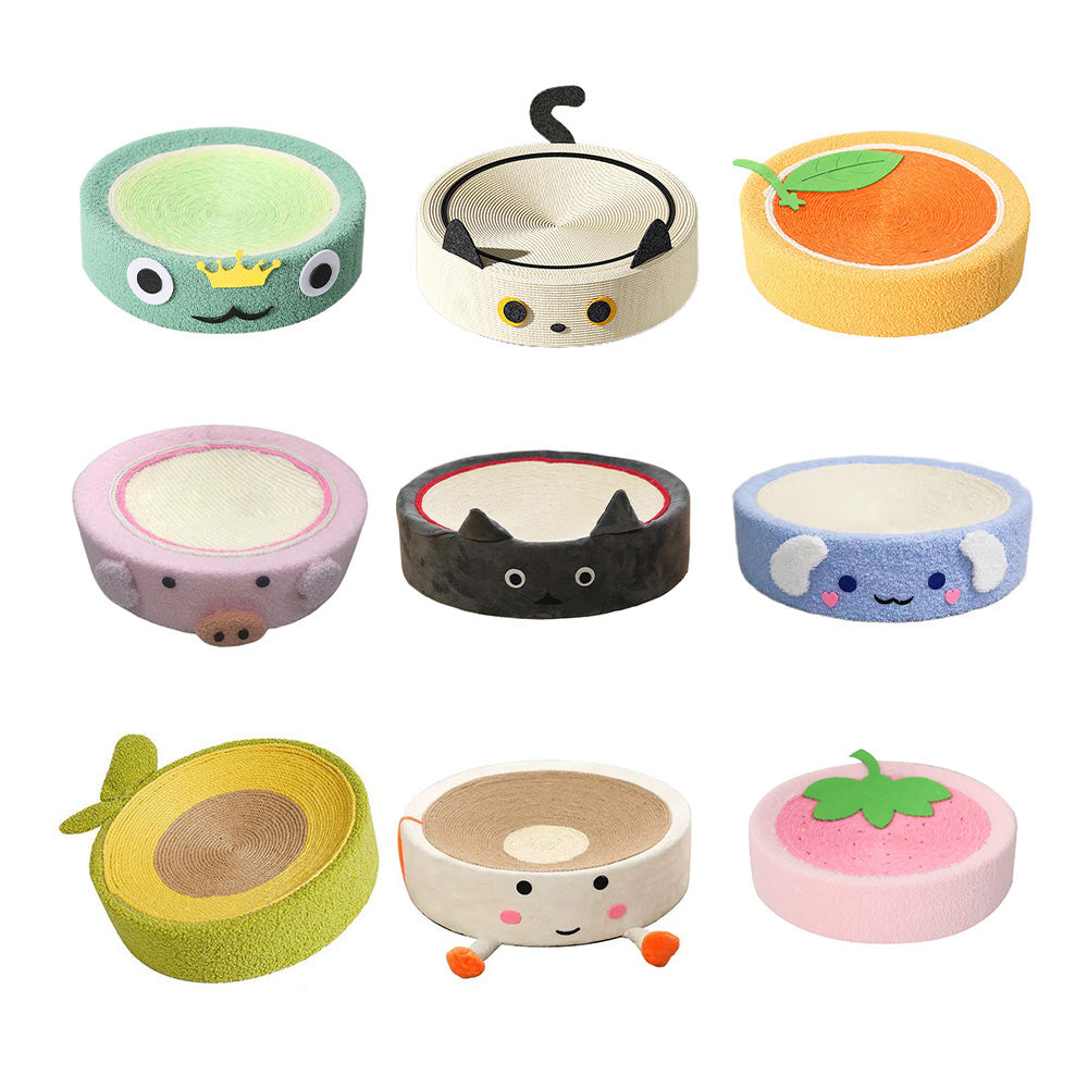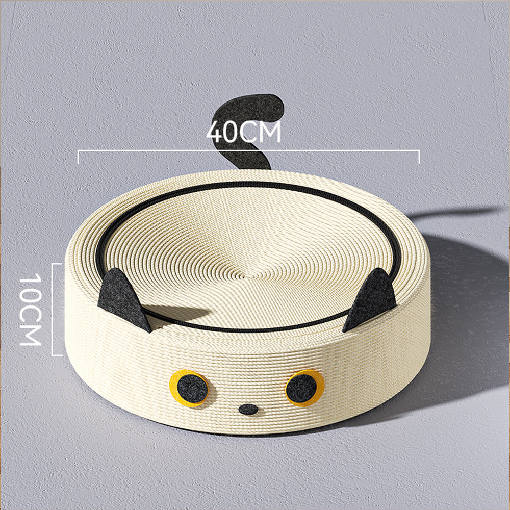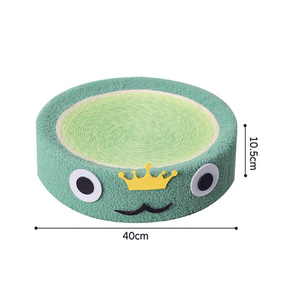 Cartoon Round Cat Scratcher,with a concave design for immersive play, ensures worry-free enjoyment for larger cats. Crafted from durable sisal hemp, it endures scratching for a chip-free experience. Seamlessly integrating rest and claw grinding optimizes space usage. Choose from various cute styles to add vibrant hues to your home. Packed with details, the bottom features anti-slip and moisture-proof plastic droplets for enhanced stability. Delight in your cat's joy with continuous, happy scratching and comfortable napping. Suitable for cats up to 15 kilograms.