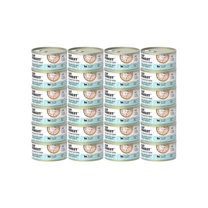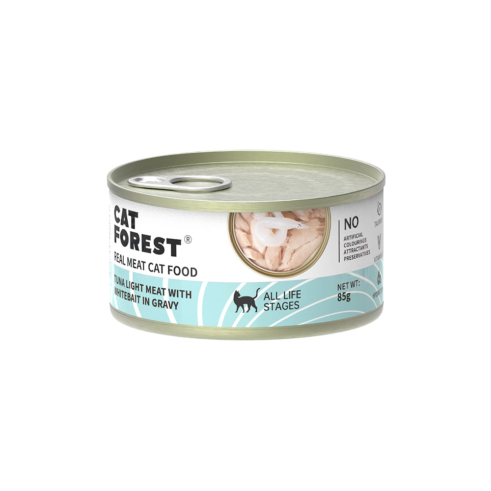 CAT FOREST Classic Tuna White Meat with Whitebait in Gravy Canned Cat Food offers a scrumptious meal for your beloved cat! Made from sustainably caught Deep-Sea Albacore Tuna and real whitebait, this recipe is packed with flavour and texture. Moreover, it's natural and free from grains, attractants, colourings, and preservatives.