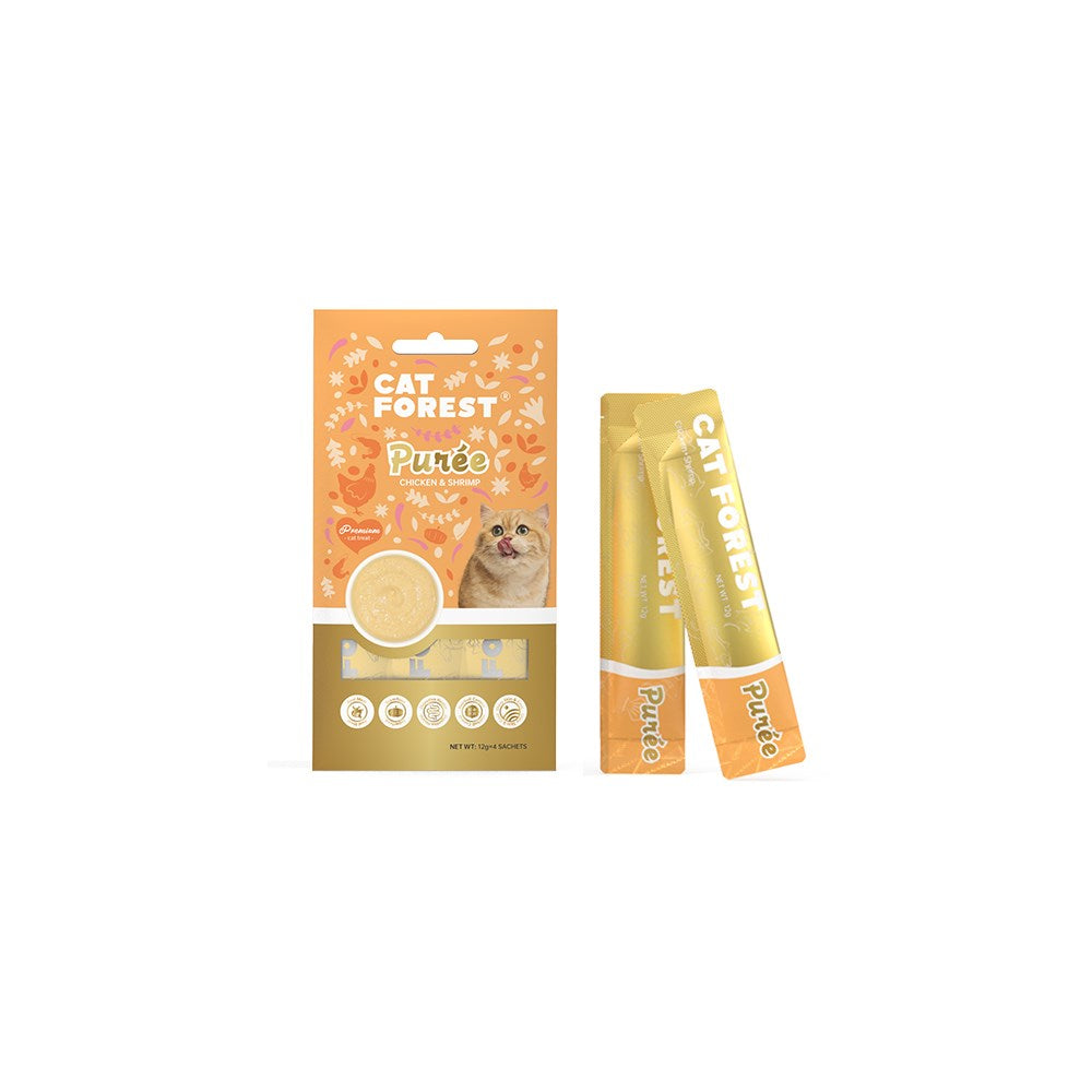A taste of this delicious cat treat will make your cat purr with delight. CAT FOREST presents Puree Chicken with Shrimp Cat Treats, a taste of pure bliss that redefines feline snacking.