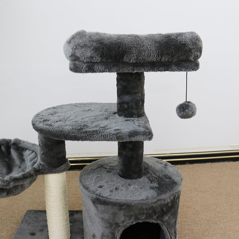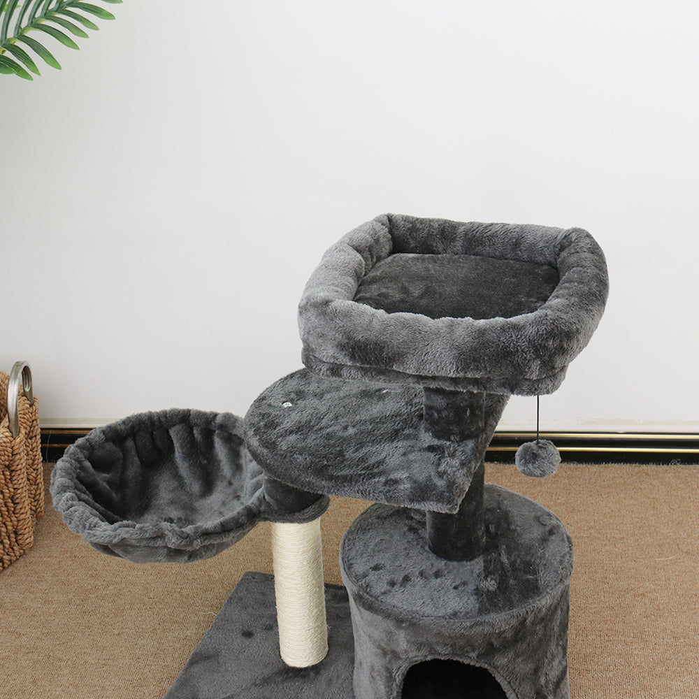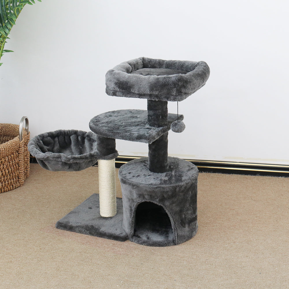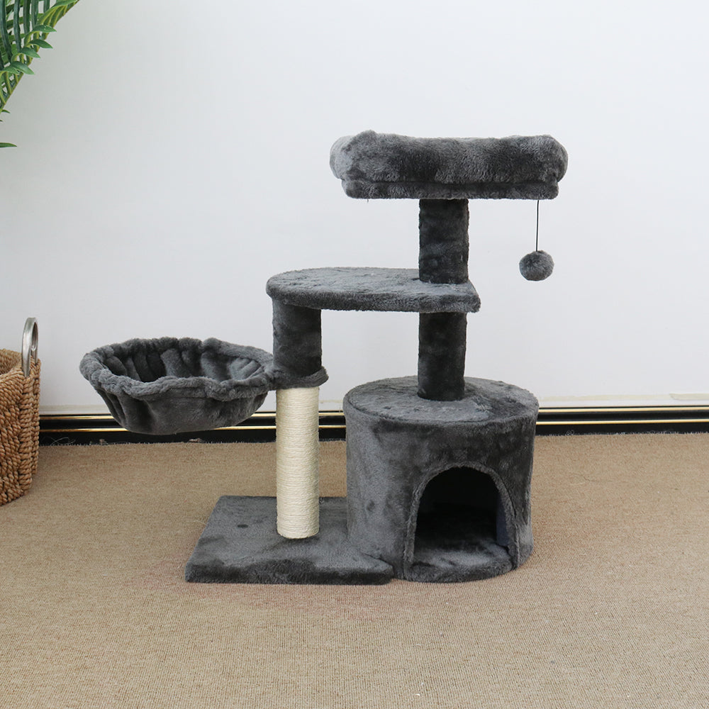 The scratching poles are made from sustainable and environment friendly materials, for your cat's safety. Cats of all sizes will love our fluffy balls, plush platform for private sleeping or just napping during the day or night - 12 hours and 7 days a week! Assembling the CATIO Chipboard Flannel Cat Scratching Tower - Cubby is simple without any tools required; it can be erected within seconds ready to use!