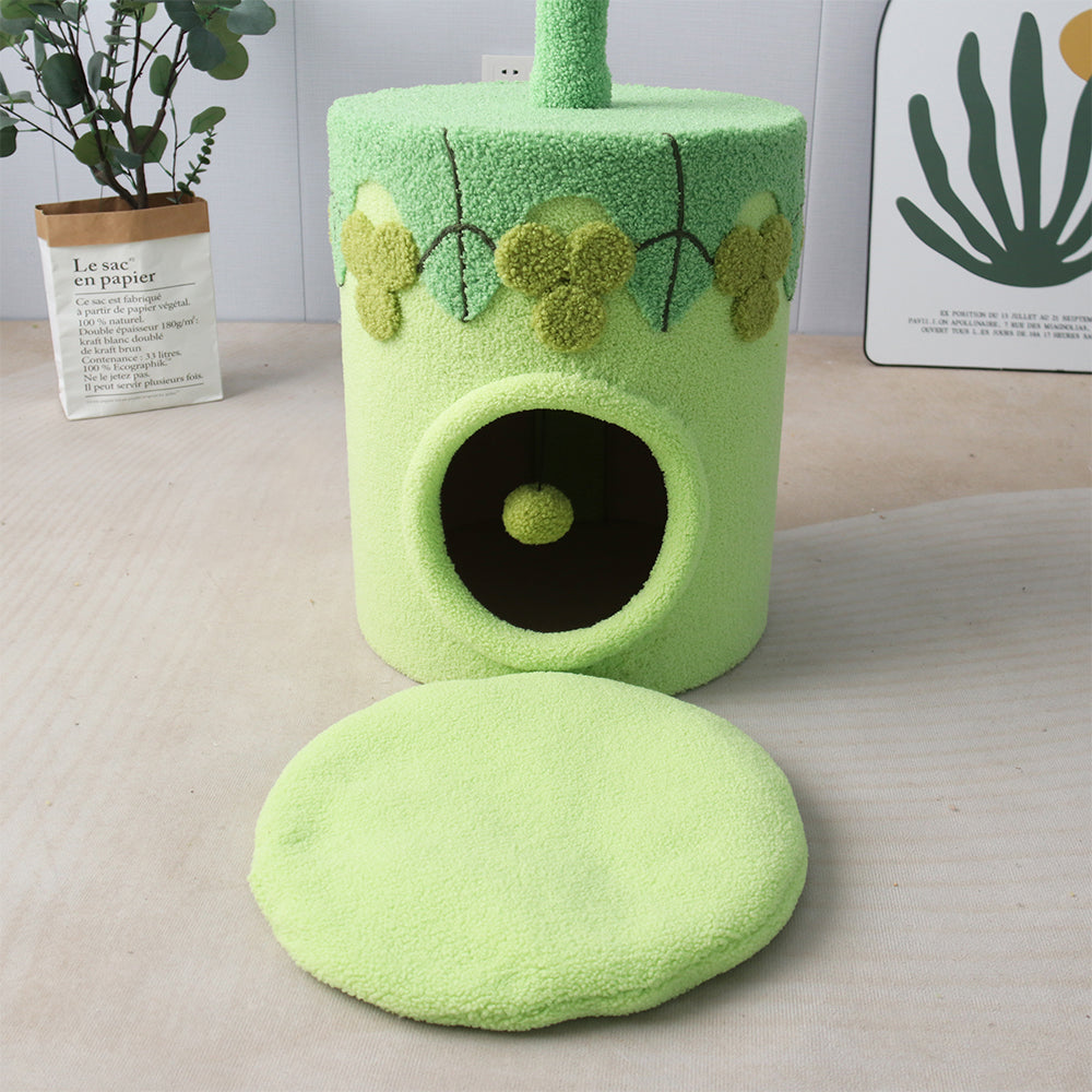 The cat house comes in hues of green, adding a touch of nature to your home. The soft plush material creates a cozy and inviting environment for your cat to curl up and rest. With its sturdy and stable construction, this cat house guarantees durability and peace of mind. Additionally, the top of the cat house offers additional lounging space, allowing your cat to perch and observe their surroundings with a sense of regality.