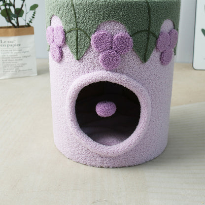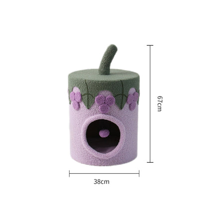 Step into a world of purr-fection with CATIO Purple Grape Cat House. This enchanting retreat offers a safe and cozy space where your cat can unwind, snooze, and find ultimate comfort. The round entrance leads to a secure haven adorned with different shades of purple, evoking a touch of magic in your home decor.