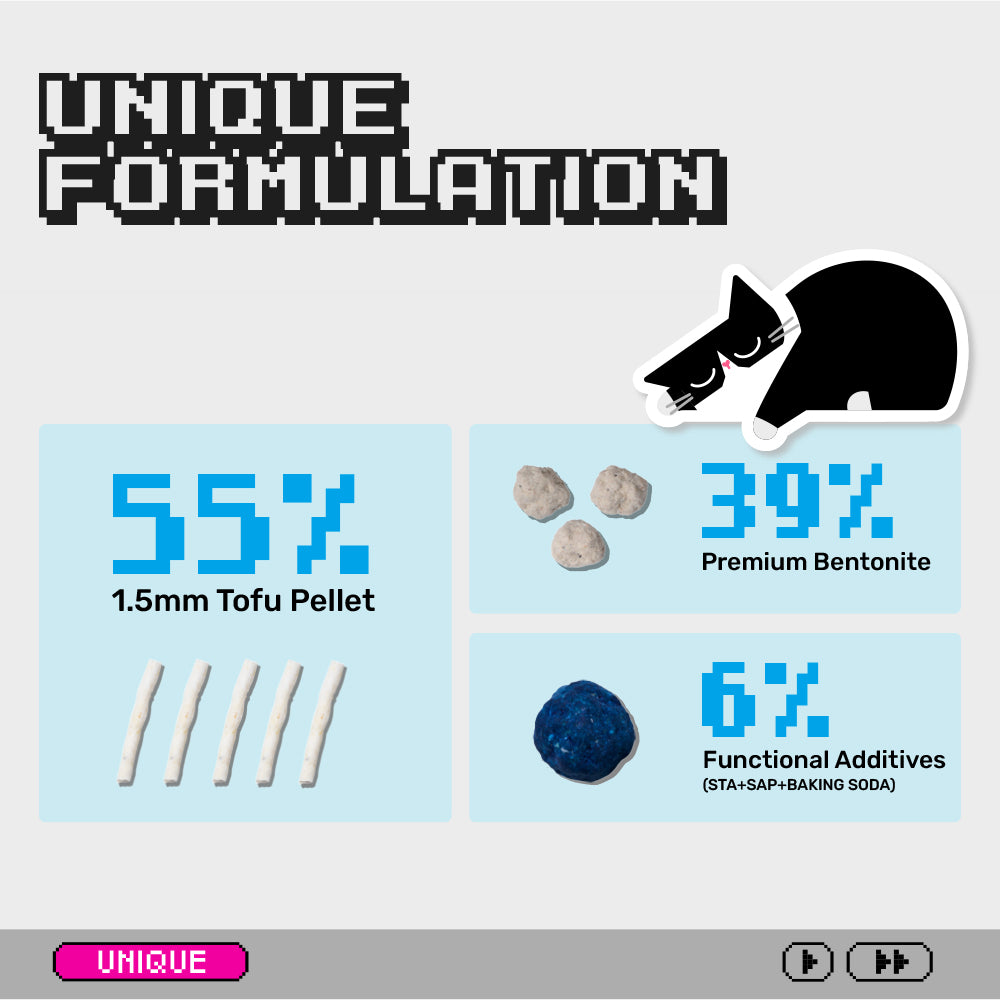 - Made of 55% tofu pellets, 39% premium bentonite, and 6% functional additives.