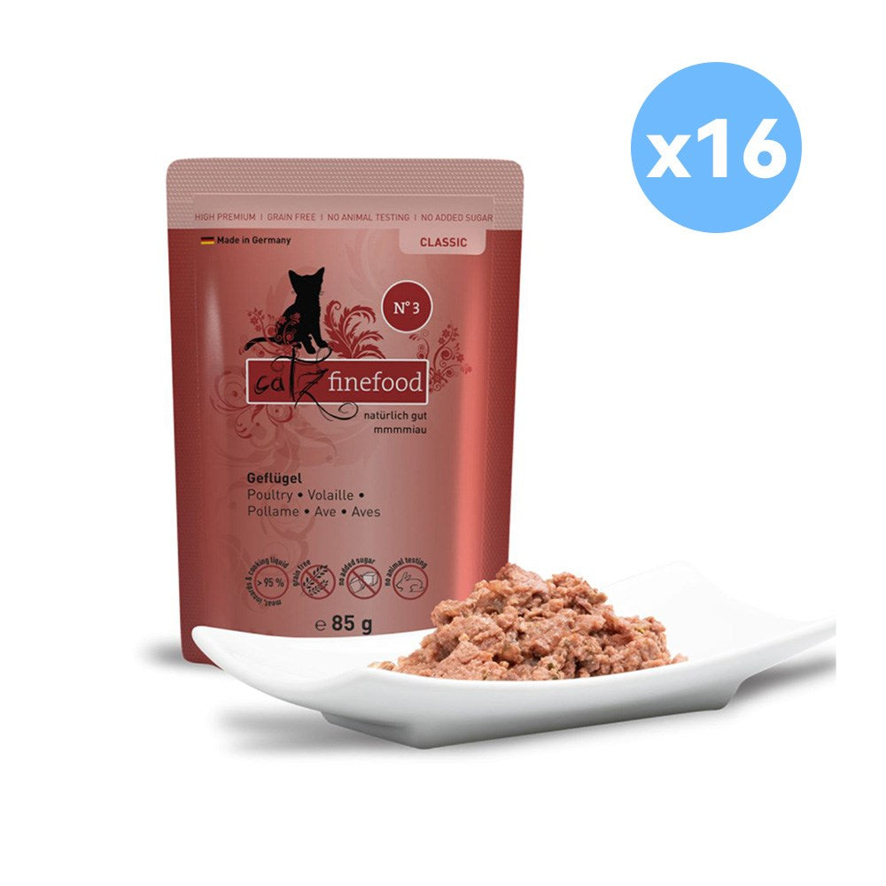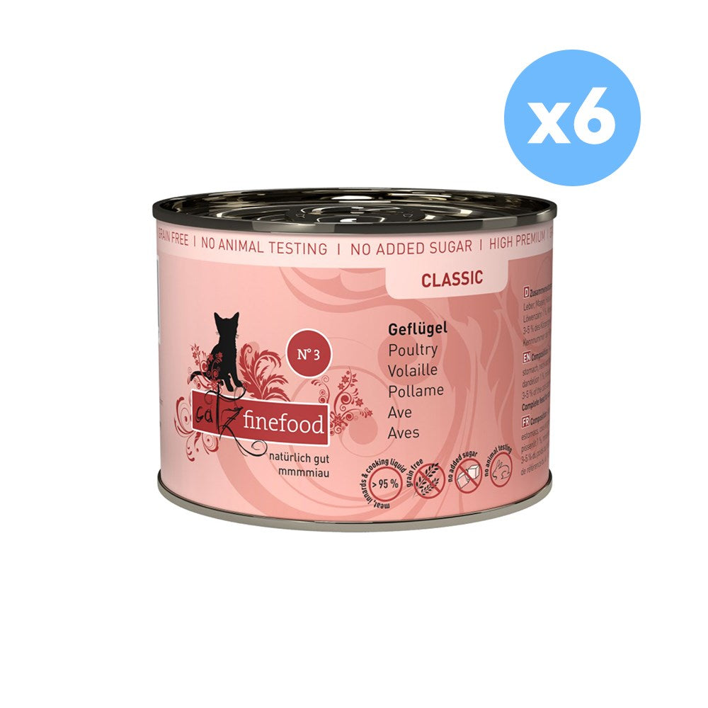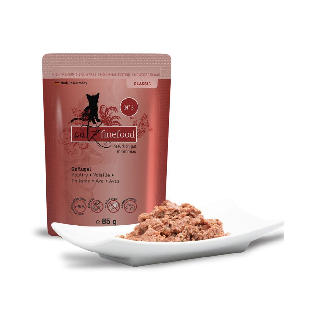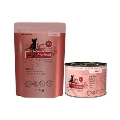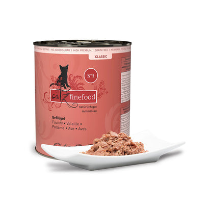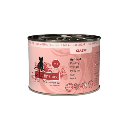 CATZ FINEFOOD Classic cat food selection is meticulously crafted by nutrition experts and veterinarians to cater to your cat's unique dietary needs. This complete food provides a balanced blend of essential nutrients and vitamins, ensuring your feline companion's well-being.