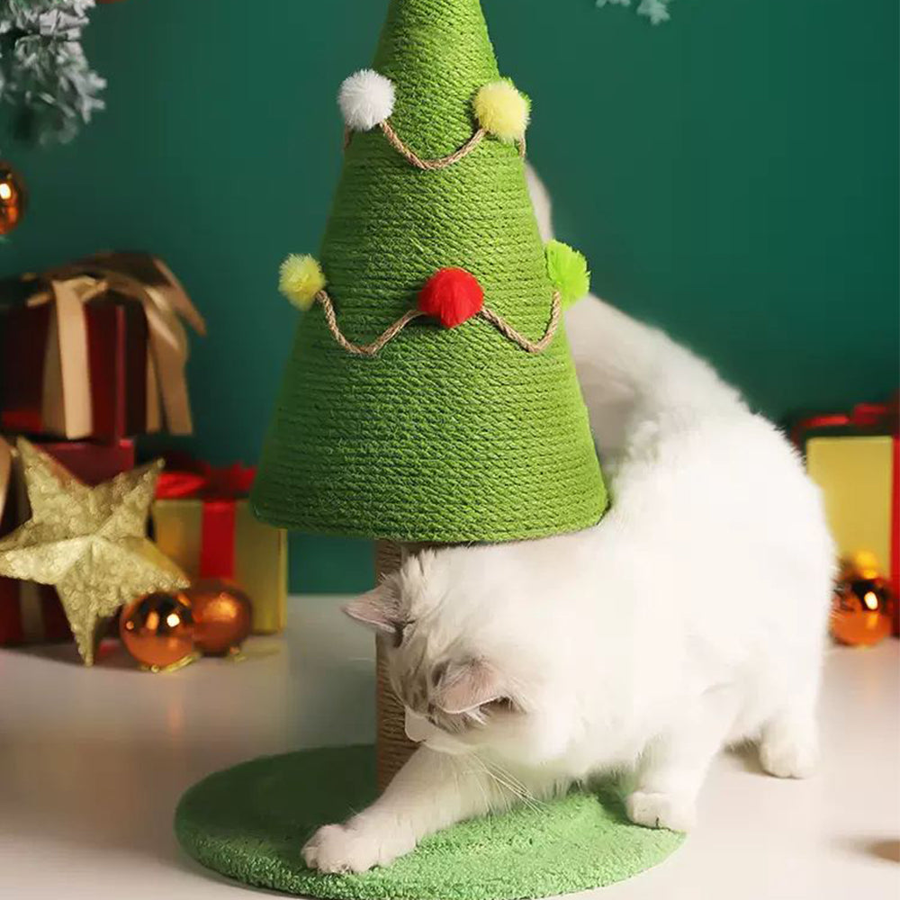 This durable and wear-resistant scratching post provides a safe outlet for your cat's natural scratching instincts, keeping your furniture scratch-free. Not just a cat scratcher, it also doubles as a festive Christmas decoration. Constructed with sisal material, it's the ideal gift for your furry friend this season.