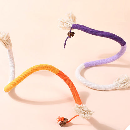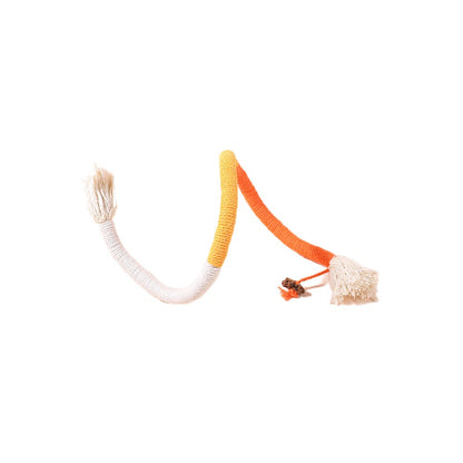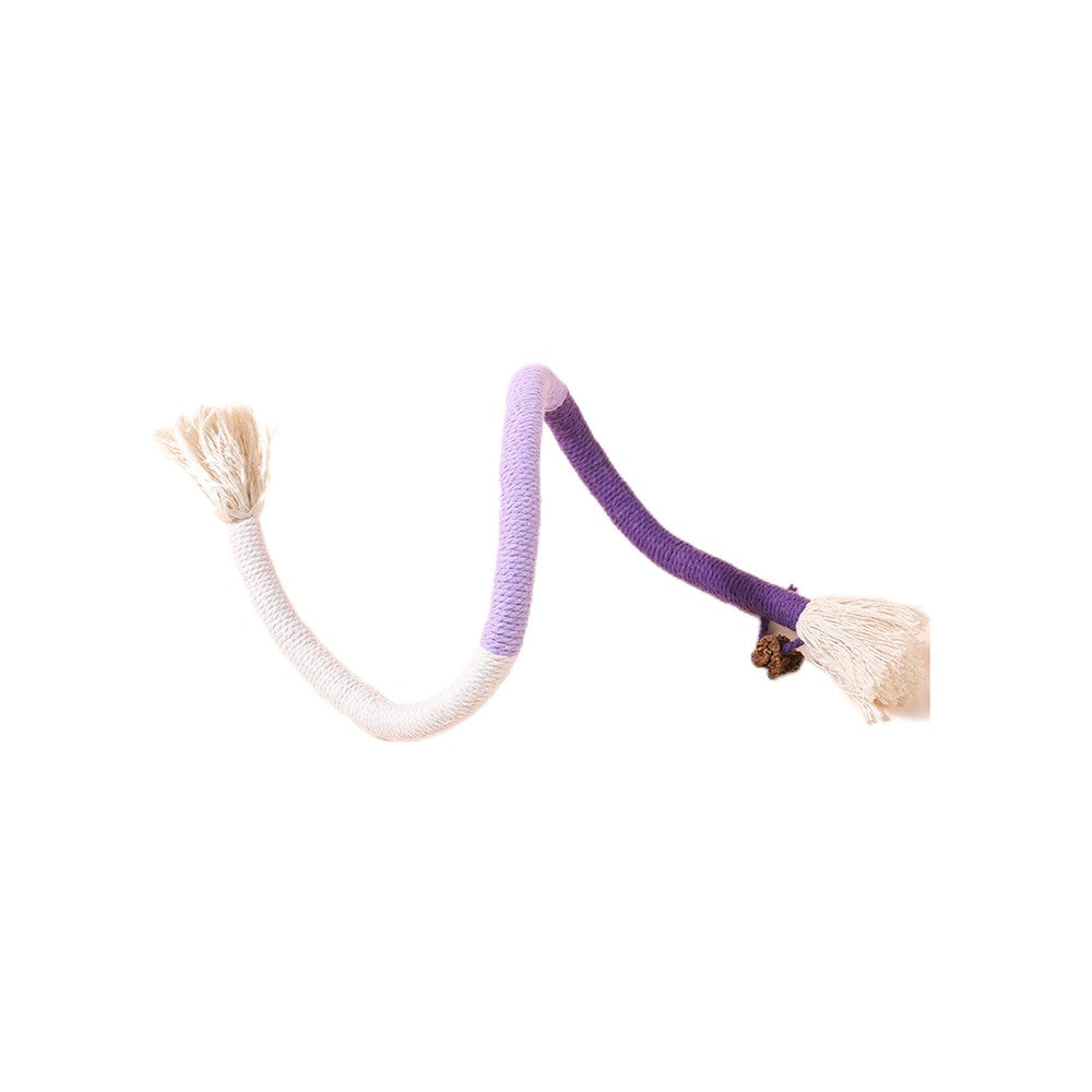 Colorful Grinding Teeth Cat Rope Toys provide quiet playtime for cats with noise-free rope chewing, ideal for late-night activities. It promotes peaceful nights by offering quiet, self-entertaining play and small toys for enjoyable sleep. The soft cotton ropes gently massage gums, promoting dental hygiene and ensuring gentle teeth grinding. Cats are attracted to the silvervine, which releases signals of joy and effectively captures their attention.