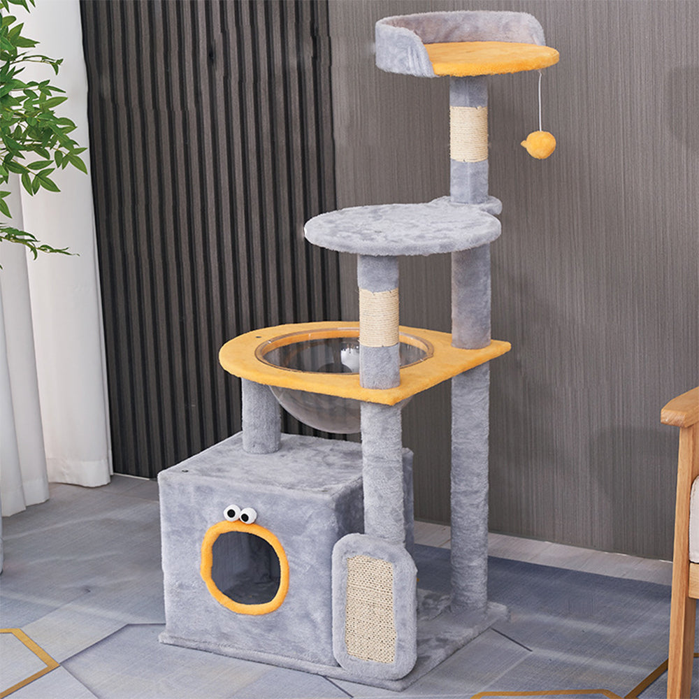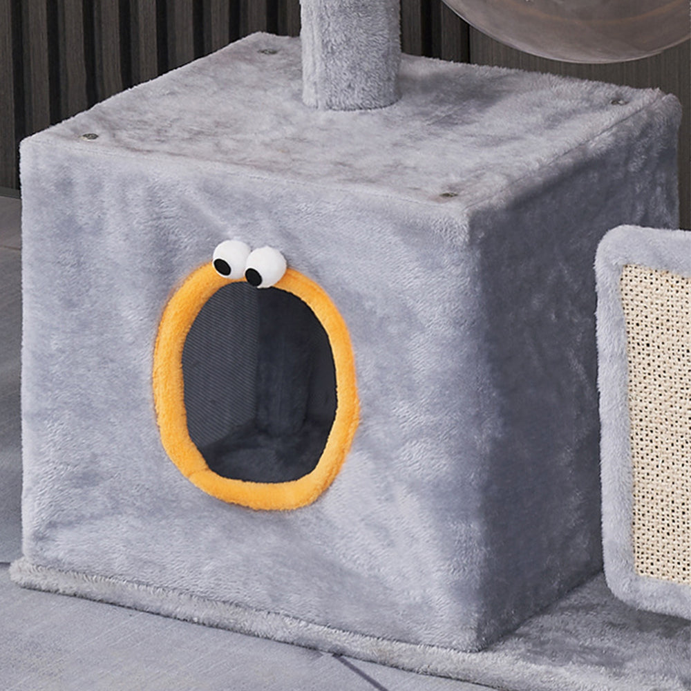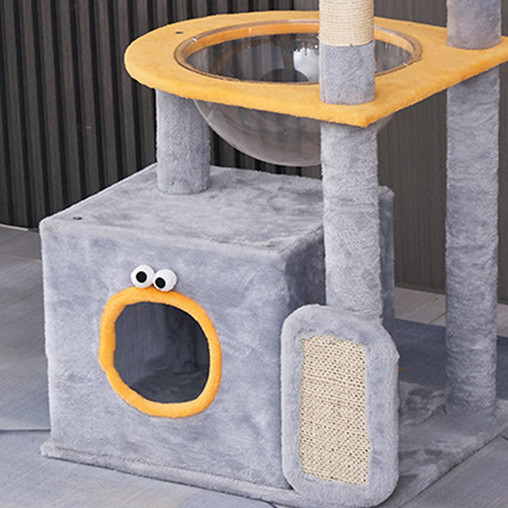 Colorful Monster Sisal Cat Tree With Space Capsule, a colorful all-in-one design featuring a sisal scratching post and a cozy space capsule. Made with particleboard, plush fabric, durable cardboard tubes, and thick sisal rope, it’s built for stability and scratch resistance. The soft plush surface ensures comfort, while the spacious layout offers cats plenty of room to climb, jump, and rest. With its playful structure and reasonable design, this cat tree is a safe and engaging playground for your feline companion. Perfect for meeting all your cat's needs while saving space in your home.