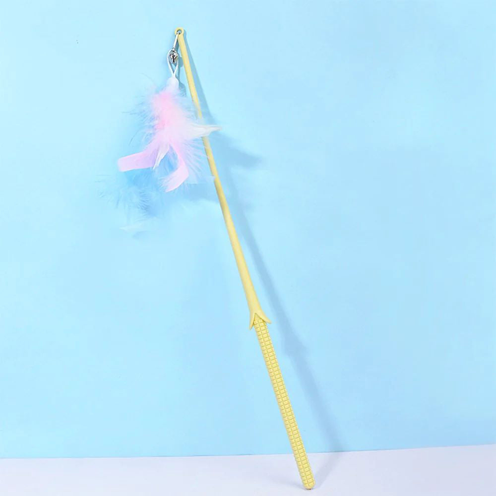 Corn Long Pole Feather Cat Teaser Yellow is the perfect cat toy to engage your furry friend in playtime! This toy features a long pole with a bright yellow colour and a fluffy feather attached to the end, designed to stimulate your cat's natural hunting instincts.