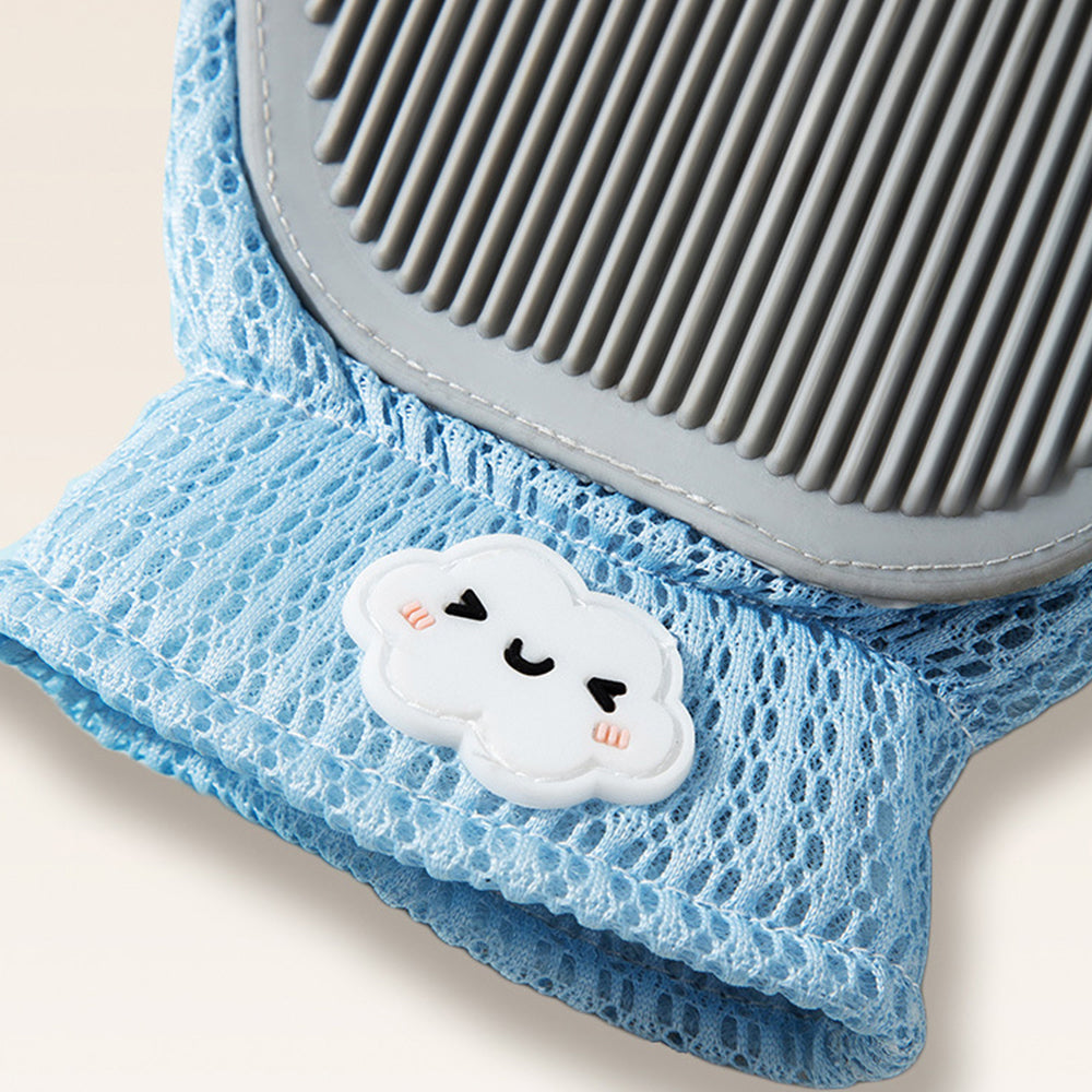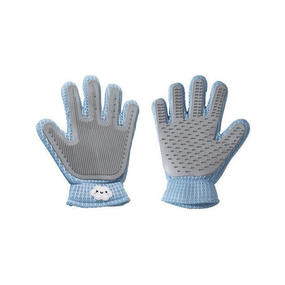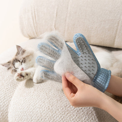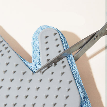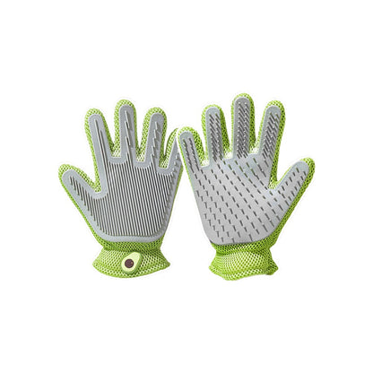 Double-sided Usable Silicone Pet Hair Removal Glove,one side grooms cats while the other removes hair from sofas and household items. It offers a new massage experience suitable for both cats and dogs, making grooming, bathing, and removing loose hair effortless. It efficiently gathers floating hair in large pieces for easy disposal. The tool features a silicone palm pad with soft bristles that pets find gentle and non-resistant.