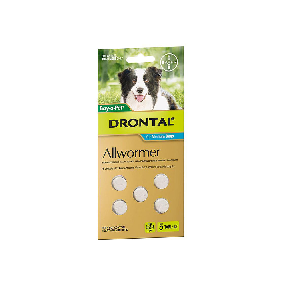 Drontal medicine tablet for 10kg dog with 5 Chews tablets is a medication for your dog who can't have worms. If they ever get the aforesaid sicknesses they feel bad, and it's a big problem because their stomachs think that they're not hungry anymore. We all know you don't want that for your fluffy friend, so buy them some Drontal Chewable Medicine. This chewable medicine won't hurt their teeth or make them uncomfortable; in fact, it tastes yummy! It contains 5 pieces of allwormer chewable tablets with medication which will flush those worms away.