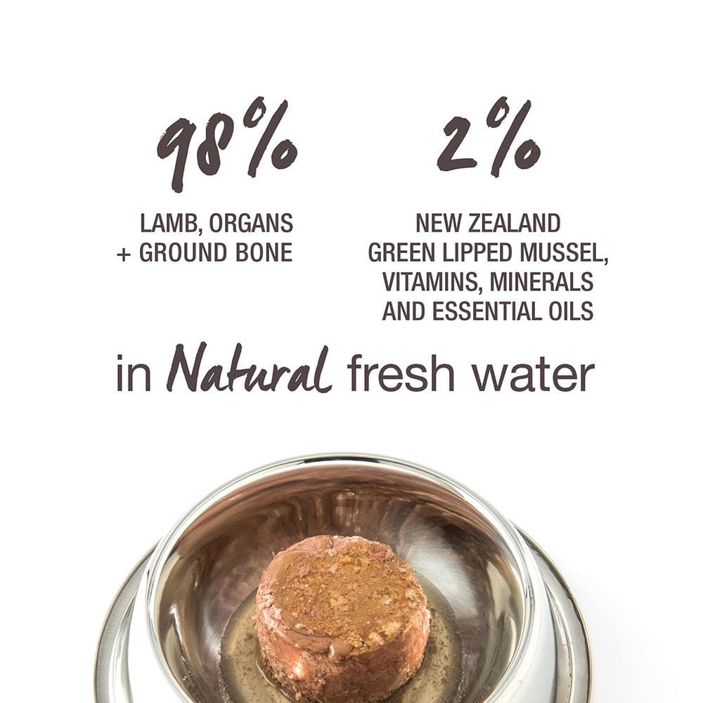 Lamb, Water Sufficient for Processing, Lamb Tripe, Lamb Heart, Lamb Kidney, Lamb Spleen, Lamb Liver, Lamb Blood, Ground Lamb Bone, New Zealand Green Mussel, Fish Oil, Flaxseed Flakes, Dipotassium Phosphate, Dried Kelp, Salt, Taurine, Vitamin E Supplement, Magnesium Oxide, Zinc Proteinate, Copper Proteinate, Manganese Proteinate, Thiamine Mononitrate, Folic Acid, Vitamin D3 Supplement